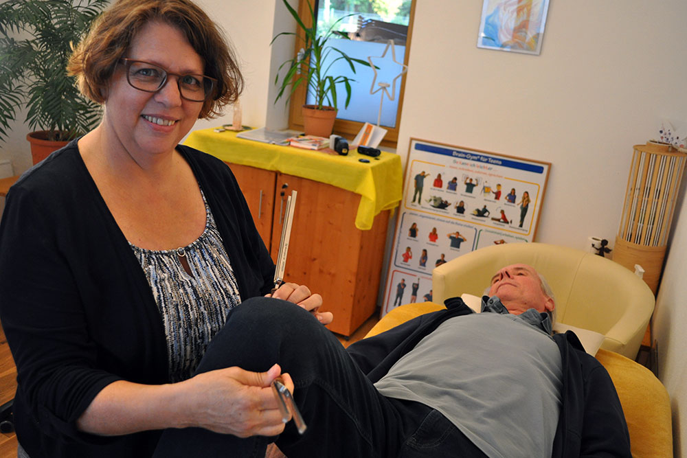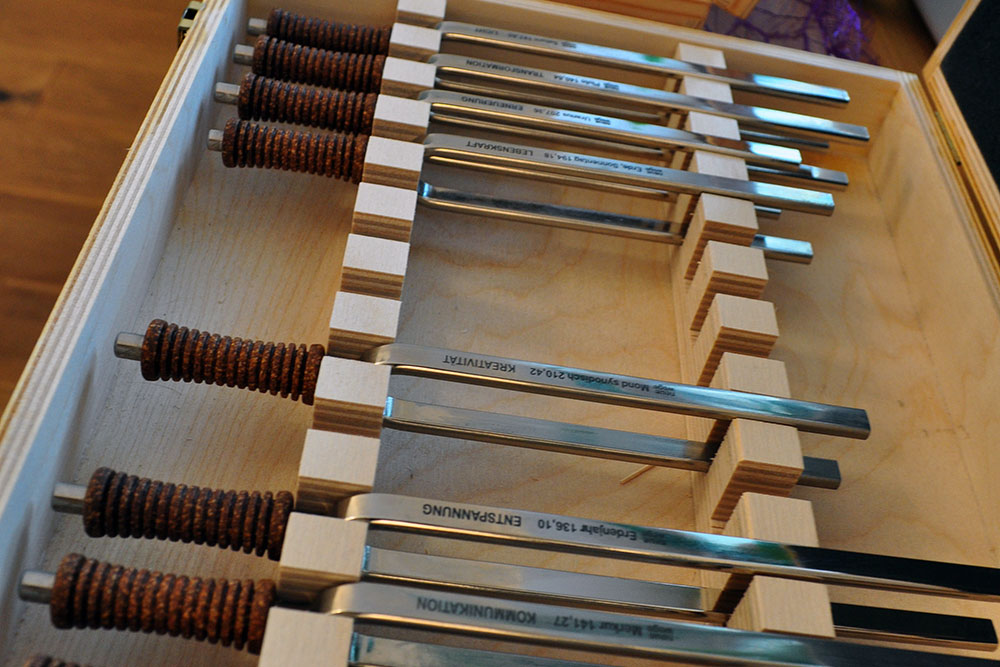 Spezielle Körper-Stimmgabel werden entweder direkt auf den Körper aufgesetzt oder in der Aura des Menschen bewegt. Dieses Klangerlebnis kann nicht nur auf körperlicher Ebene förderlich wirken, sondern beispielsweise auch dabei unterstützen, Spannungen zu lösen, innere Ruhe und Klarheit zu finden und bestimmte Lebensthemen aus einer neuen Perspektive zu betrachten.
